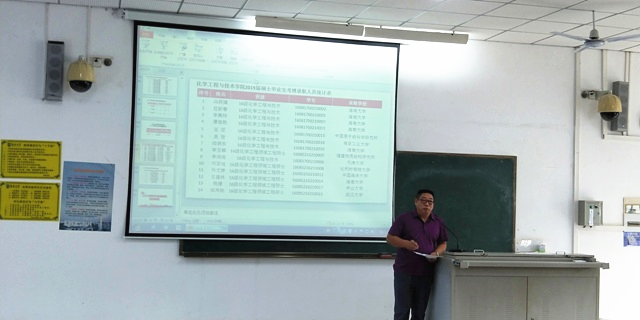 2019年10月15日下午15:30化学工程与技术学院在教学楼4-201教室召开2020届毕业生考研志愿报考辅导暨毕业生就业工作动员会。会议由学院学工办主任王克岩主持,参加会议的有学院党委书记冯广波、学院副院长李嘉诚、副院长贾春满以及2020届本硕毕业生。