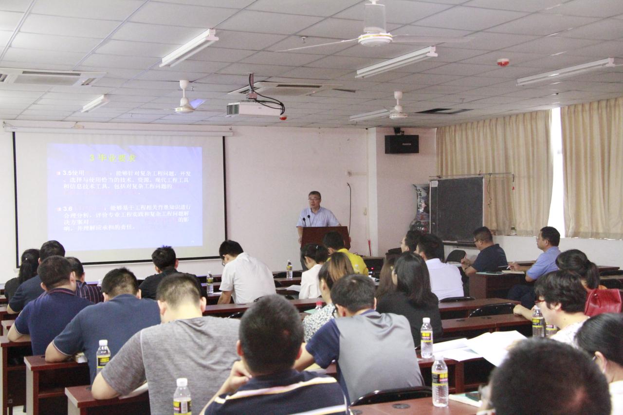 10月17日,周六,化学工程与技术学院的全体教职人员没有正常休息,在学校研发中心楼的710会议室正认真的参加学习培训。为进一步的提升学院教职工的对专业工程认证的技能,学院专门聘请了南方科技大学实验室工作部的专家来学院传授指导化工专业工程认证相关知识。