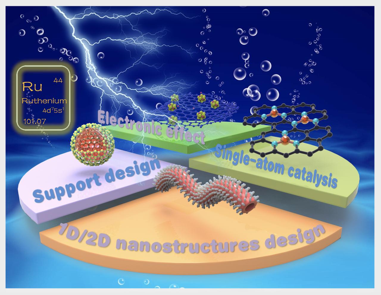 随着当前世界能源结构的调整,洁净、可再生、能量密度高的氢被认为是传统化石能源的最佳替代品之一。近年来,我国政府对氢能产业支持力度不断加大,2020年4月,氢能被写入《中华人民共和国能源法》;同年6月,国家发改委提出制定国家氢能战略规划;2021年3月,氢能被列入国家未来六大产业之一。当前工业制氢的方式主要有化石燃料制氢、焦炉气制氢、甲醇裂解制氢、电解水制氢。其中,电解水制氢产生的“绿氢”是规模化绿色产氢的最优途径。对此,为了降低电解水产氢的巨大成本,开发性能优异,低成本的无铂(钌基)催化剂是推动氢能技术应用的关键环节和有效途径。