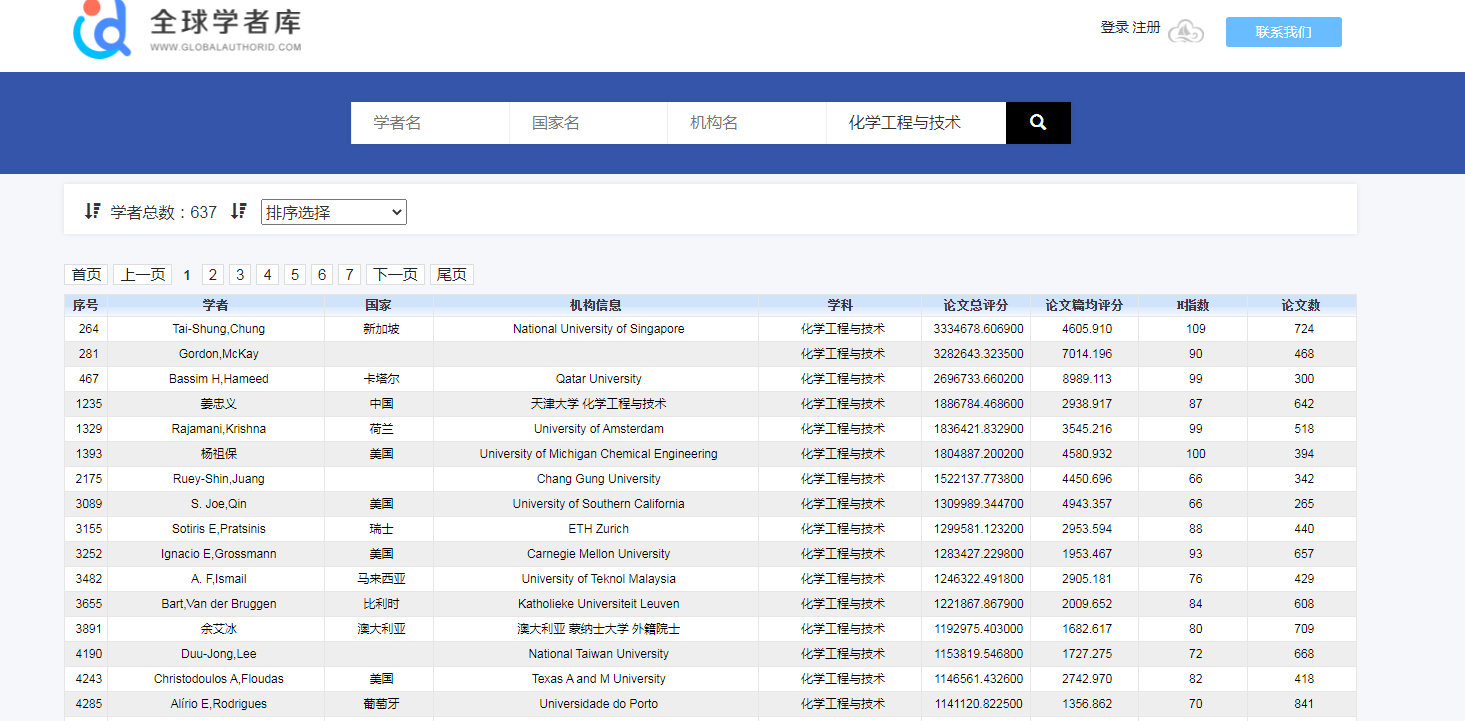 近日,全球学者库网站公布了“全球顶尖前10万科学家排名”,其中海南大学化学工程与技术学院2020年引进的国家级人才姜忠义教授成功入选,在全球总排名第1235,位列化学工程与技术学科国内排名第一,全球排名第四。