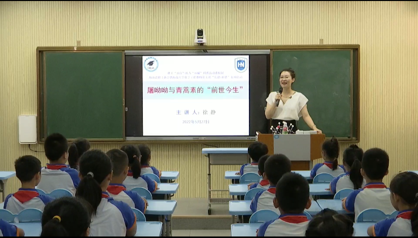 课堂上,小朋友们聚精会神的注视和倾听着屠呦呦与青蒿素之间的精彩传奇的故事,被屠呦呦不畏艰难为中医药研究无私奉献的感人事迹所深深吸引,同学们积极踊跃地发表见解、回答问题,现场气氛十分热烈。