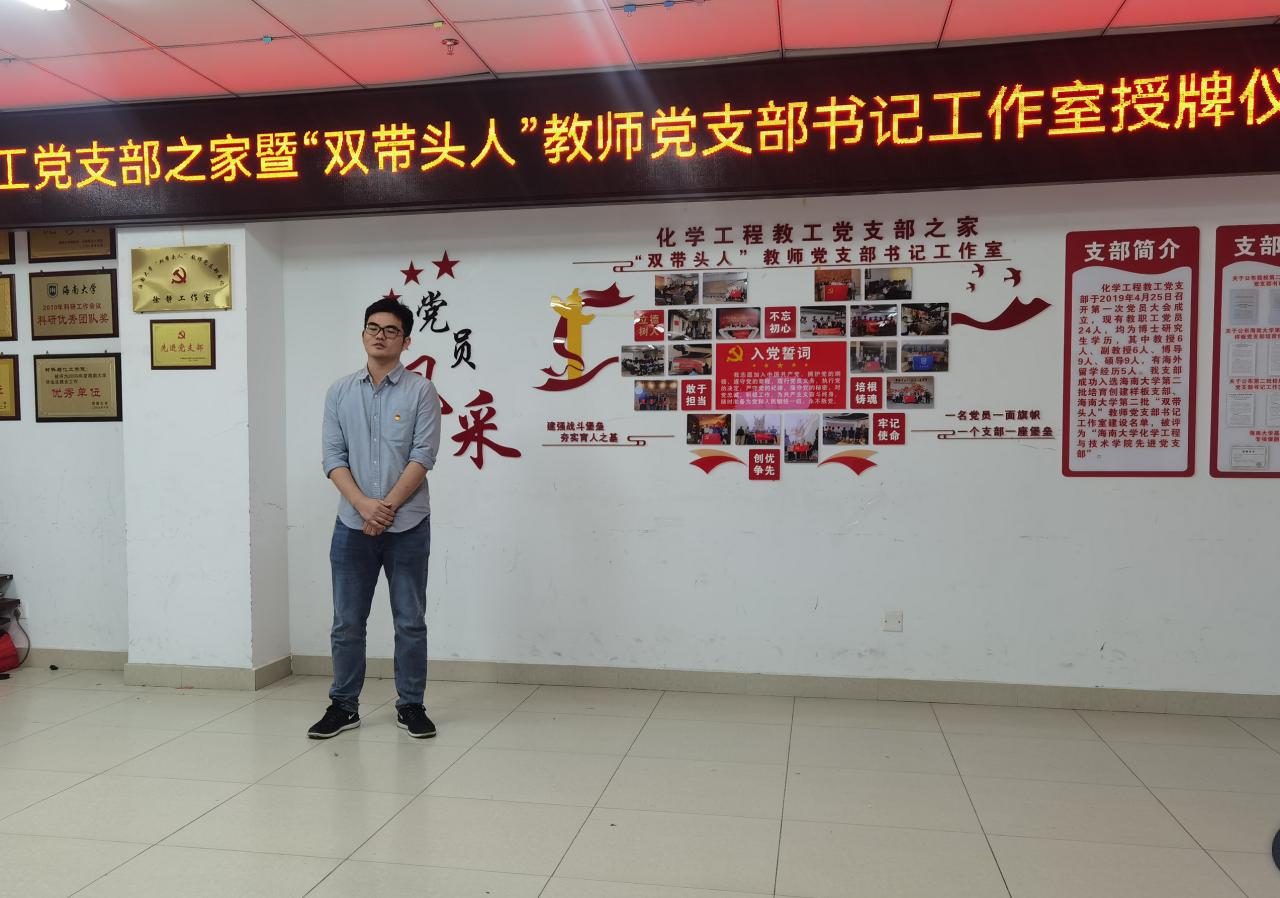 支部书记徐静首先对学校和学院领导对党支部一直以来的指导和大力支持表示感谢,对化学工程教工党支部的发展历程、支部获奖、工作室前期建设情况和未来的工作规划等做了详细介绍,希望支部党员可以坚定理想信念,强化责任担当,围绕学校“学院-书院-协同创新中心”的重点工作和中心任务,撸起袖子加油干,在课程思政、教学科研和社会服务等各项业务工作中取得更好的成绩!