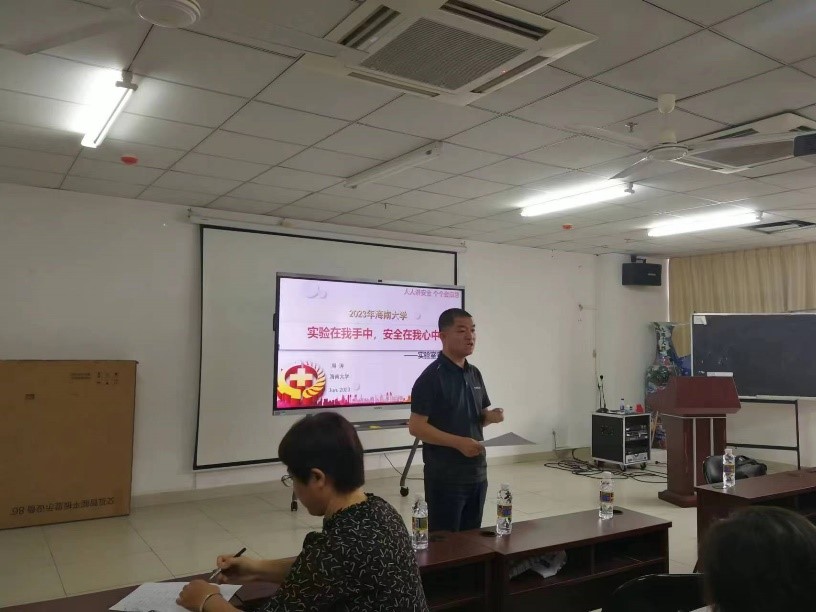 为了加强实验室危险源辨识能力,提高风险评估和应急管理水平,根据《海南省教育系统2023年“安全生产月”活动方案》的通知要求,化学工程与技术学院于2023年6月15日在研发楼710开展了实验室危险源的辨识和风险评估及应急管理培训,学院刘钟馨副院长,海南省精细化工研究中心负责人尹学琼教授,各平台安全员,各团队教师、研究生代表共计30余人参加了培训。