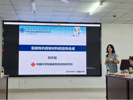 中国科学院福建物质结构研究所刘天赋教授作了“氢键有机框架(HOF)材料的定向合成”的报告。她系统性地总结了稳定HOF的合成策略、HOF可控合成机制以及氢键赋予的结构及功能性,并同与会者进行了深入的交流。