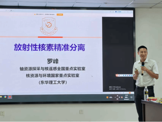 东华理工大学罗峰教授带来了“放射性核素精准分离”的报告。他从核能发展面临的问题切入,详细展示了如何实现放射性核素的精准识别,其相关工作实现的大突破和性能提升激发了同学们的兴趣。