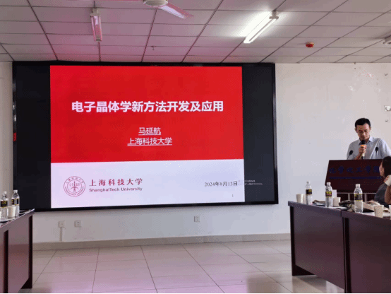 上海科技大学马延航教授进行了“电子晶体学新方法开发及应用”的主题报告。他详细阐述了三维电子衍射的发展历史和现状、数据处理、样品处理、原位观察以及结构解析方法,并与各位专家和学生进行了深入的讨论。
