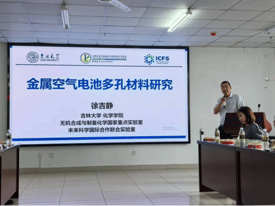 吉林大学徐吉静教授首先进行了“金属空气电池多孔材料研究”的报告。他针对金属空气电池中的关键科学问题提出了分子孔道运输策略和外场耦合辅助策略,并进行了广泛的讨论和交流。