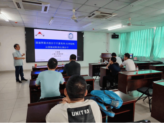 王春雷研究员在研发楼710会议室作了题为《固液界面水的分子尺度有序-无序结构》的学术报告。报告总结了数年以来其研究组对常温固体表面单层有序水分子的研究工作,展示了单层有序水分子在表面浸润特性、超低介电常数、相变行为等方面区别于体相水的行为,为生物蛋白表面结冰成核行为、外光场调控固液界面行为和生物分子行为提供了理论基础。