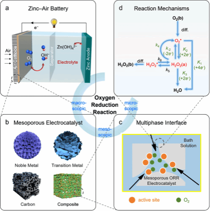 在Coordination Chemistry Reviews上发表题为“Mesoporous Electrocatalysts for Oxygen Reduction Reaction: From Mechanisms, Characterizations to Designs”的论文中,研究团队系统总结了介孔氧还原反应(ORR)电催化剂的设计、原理、最新进展及未来挑战。该文章从热力学与动力学机理出发,深入探讨了介孔结构在提升ORR效率中的关键作用,为下一代金属空气电池和燃料电池的开发提供了重要指导。