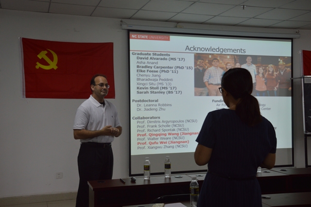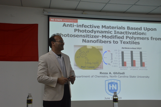 2019年6月13日,美国北卡罗莱纳州立大学Reza A. Ghiladi教授应海南省精细化工工程技术研究中心主任尹学琼教授邀请访问我校,并于下午3:00在研发楼710为化学工程与技术学院师生进行学术报告。