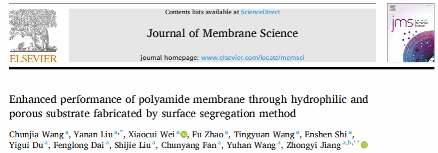 研究工作三:通过表面偏析法制备亲水多孔基底提升聚酰胺膜性能