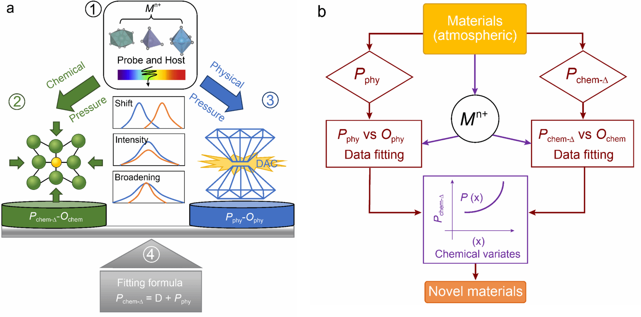 高压科学的发展拓展了材料研究的空间和维度,催生出超导、超硬、量子磁电等一系列功能材料。然而高压合成条件苛刻,成本高产量低,往往卸压后亚稳态消失。因而,通过化学手段(化学压力)模拟物理压力,大批量低成本截留亚稳态物相和性能,是高压功能材料走向应用的必由之路。固体的功能往往取决于局域结构的特征,若化学压力能模拟局域结构在物理压力下的变化,则有可能实现化学方法精准截留亚稳相。为实现上述目的,需要对局域化学压力进行有效标定。目前,常见的化学压力的度量方法主要基于单胞体积的变化和状态方程模拟,而对反映局域结构变化的局域化学压力的标定,仍然是个挑战。