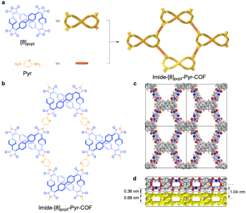 图1. Imide-[8]pcpt-Pyr-COF的合成及其空间结构。