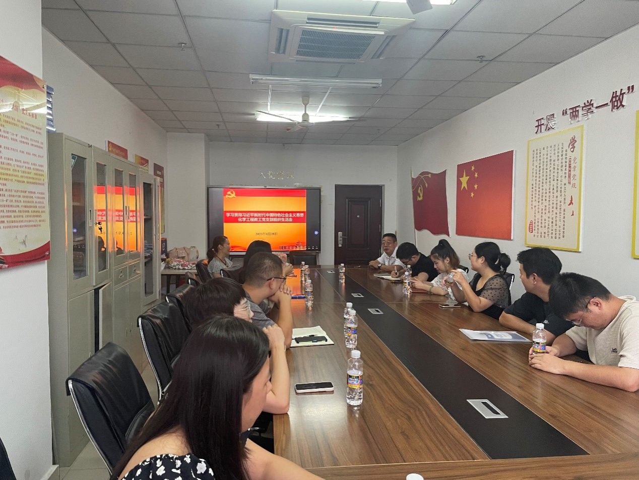 8月29日下午,化学工程教工党支部在研发楼715会议室召开《学习贯彻习近平新时代中国特色社会主义思想》专题组织生活会。yl7703永利集团党委书记冯广波,副院长刘钟馨到会指导。会议由化学工程教工党支部书记徐静主持,支委及全体党员同志参加会议。