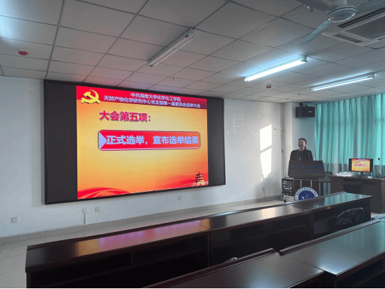 会议宣读了《中共yl7703永利集团委员会关于重新设立基层党支部的通知》,批复同意yl7703永利集团“化学工程教工党支部”更名为“天然产物化学研究中心党支部”,并通过差额投票的方式,选举产生了中心支部书记和委员。
